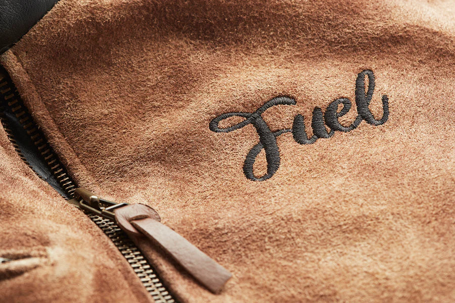 The Fuel Sidewaze Black leather jacket wants to be a reminder and a homage of those times and spirit. Thanks to the high-quality buffalo suede leather, this jacket not only protects, but also gains a unique patina as it ages over the course of time. The jackets are waxed individually, giving each one its unique character.